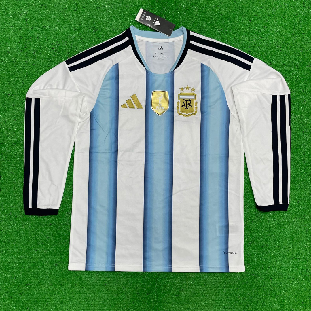 Show your passion for La Albiceleste with the Argentina Home World Cup 2026 Fan Version Full Sleeve Jersey. Inspired by the iconic sky-blue and white stripes, this jersey is made for true fans who want to celebrate Argentina’s rich football legacy in style.