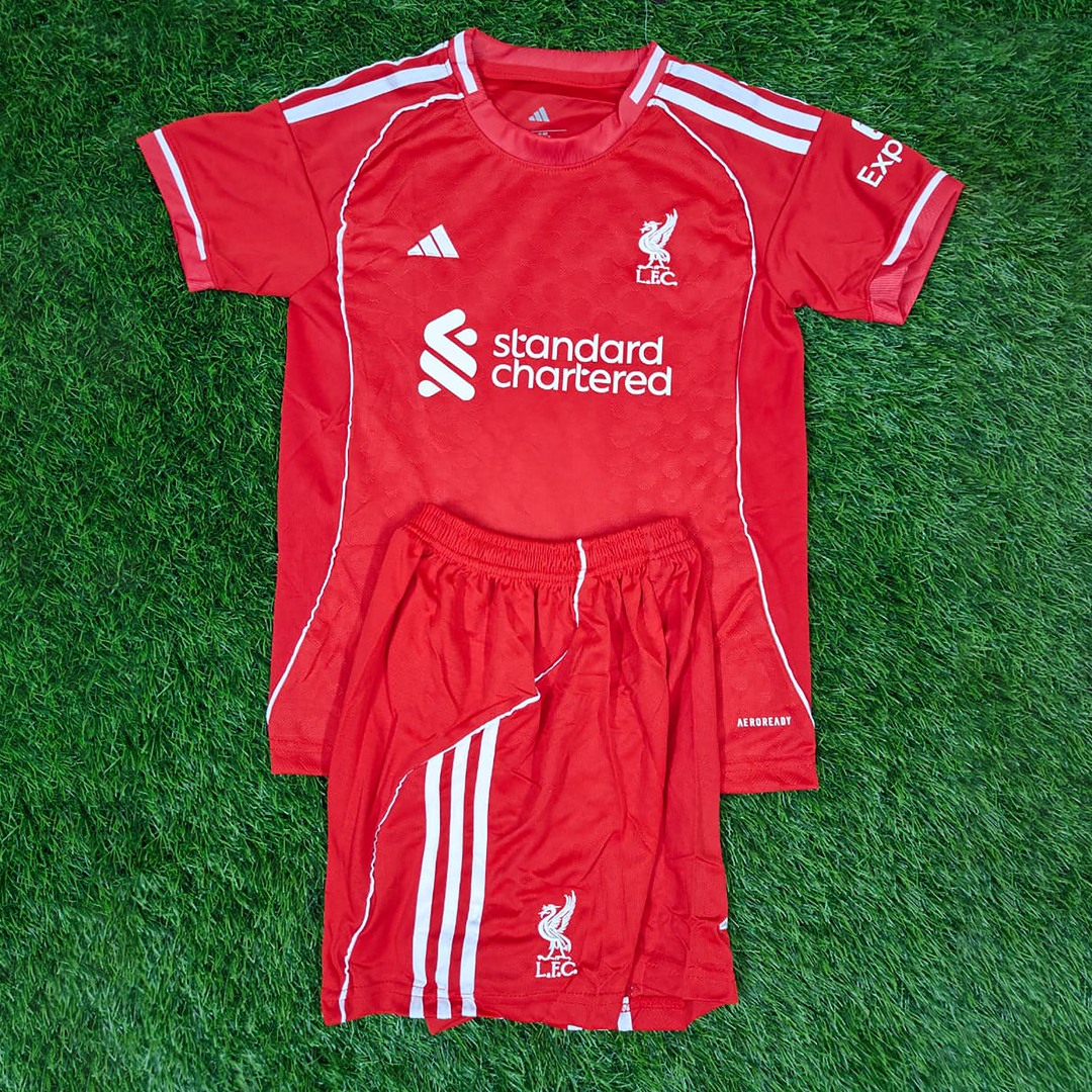 • Official-style Liverpool Home 2025–26 Kids Jersey + Shorts Set