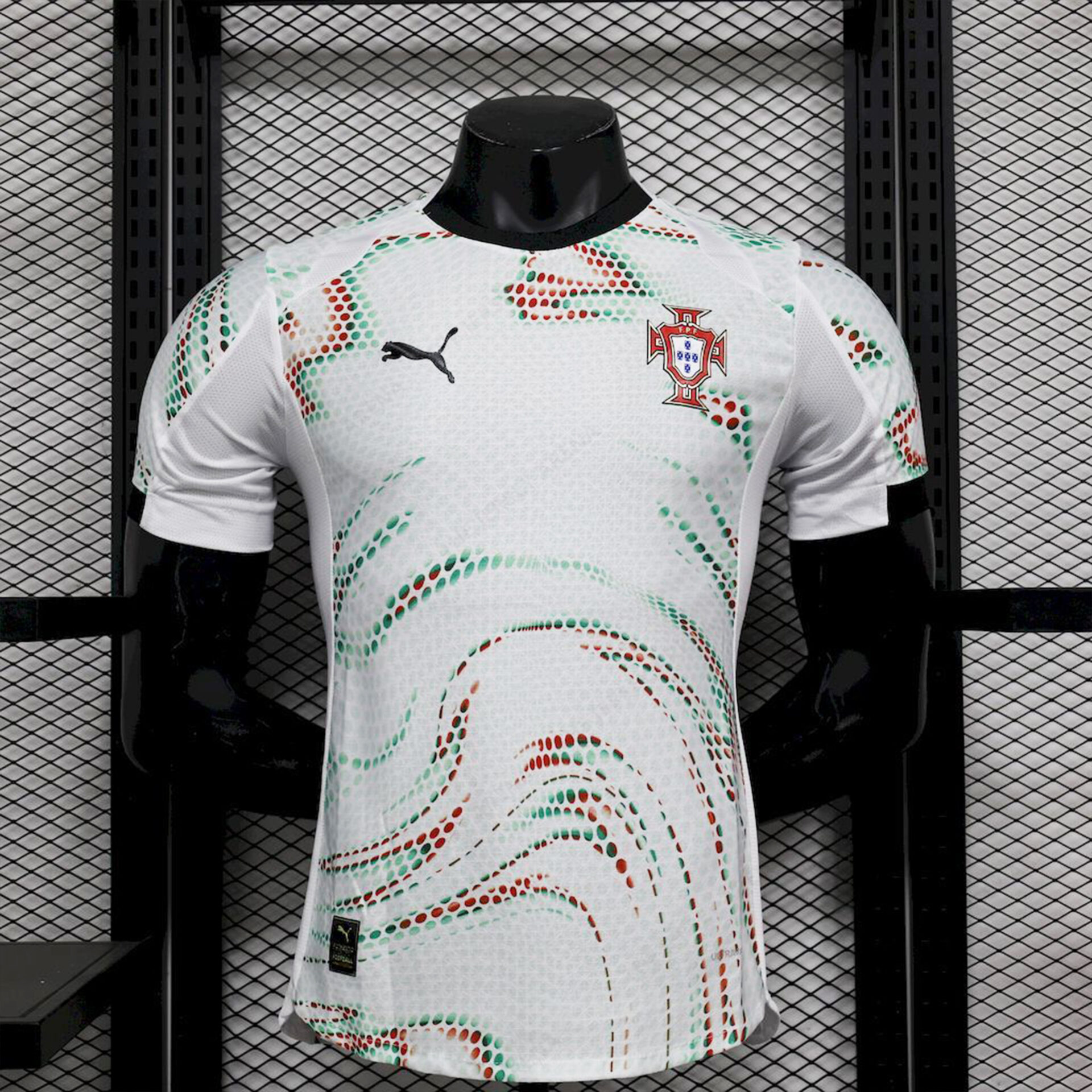 Represent your nation in style with the Portugal Away 2025 Player Version Jersey. Designed with the same advanced technology worn by the players, this jersey offers a slim, athletic fit and high-performance fabric to keep you cool and comfortable on the pitch. Showcasing the bold new 2025 away design, complete with the official Portugal crest and sponsor details, this pro-quality jersey is perfect for training, matchdays, or cheering for Cristiano Ronaldo’s team with pride.